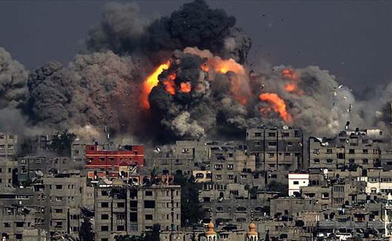 Terrifying image of #Israel-i airstrike today on #Gaza's Tuffah neighborhood on front page of @Independent